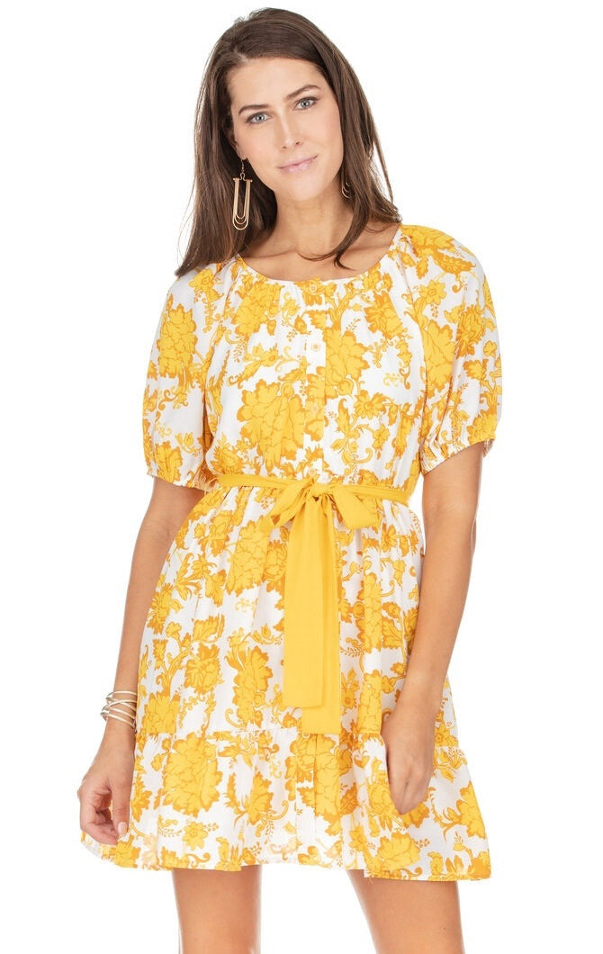 Jade Golden Paradise Peasant Button Down Dress- XL Only