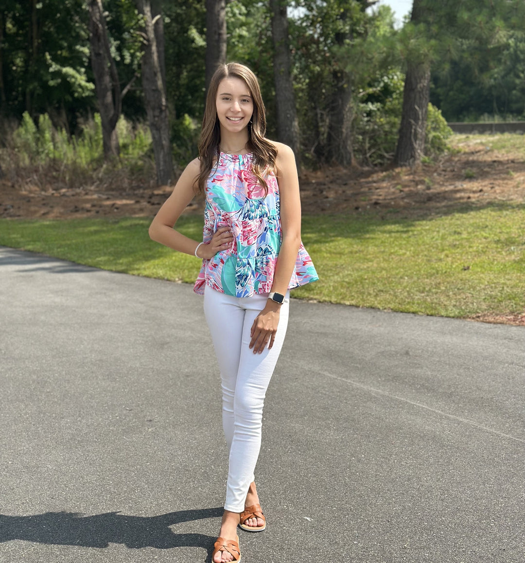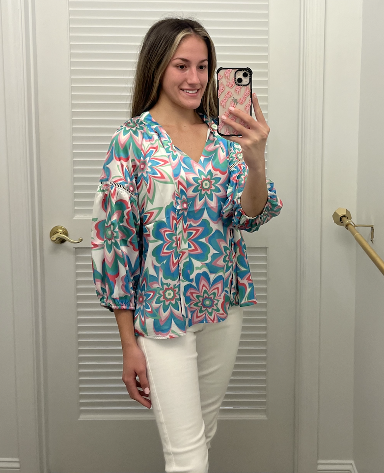Jade Tie Front Trim Blouse-Flower Burst- Small Only
