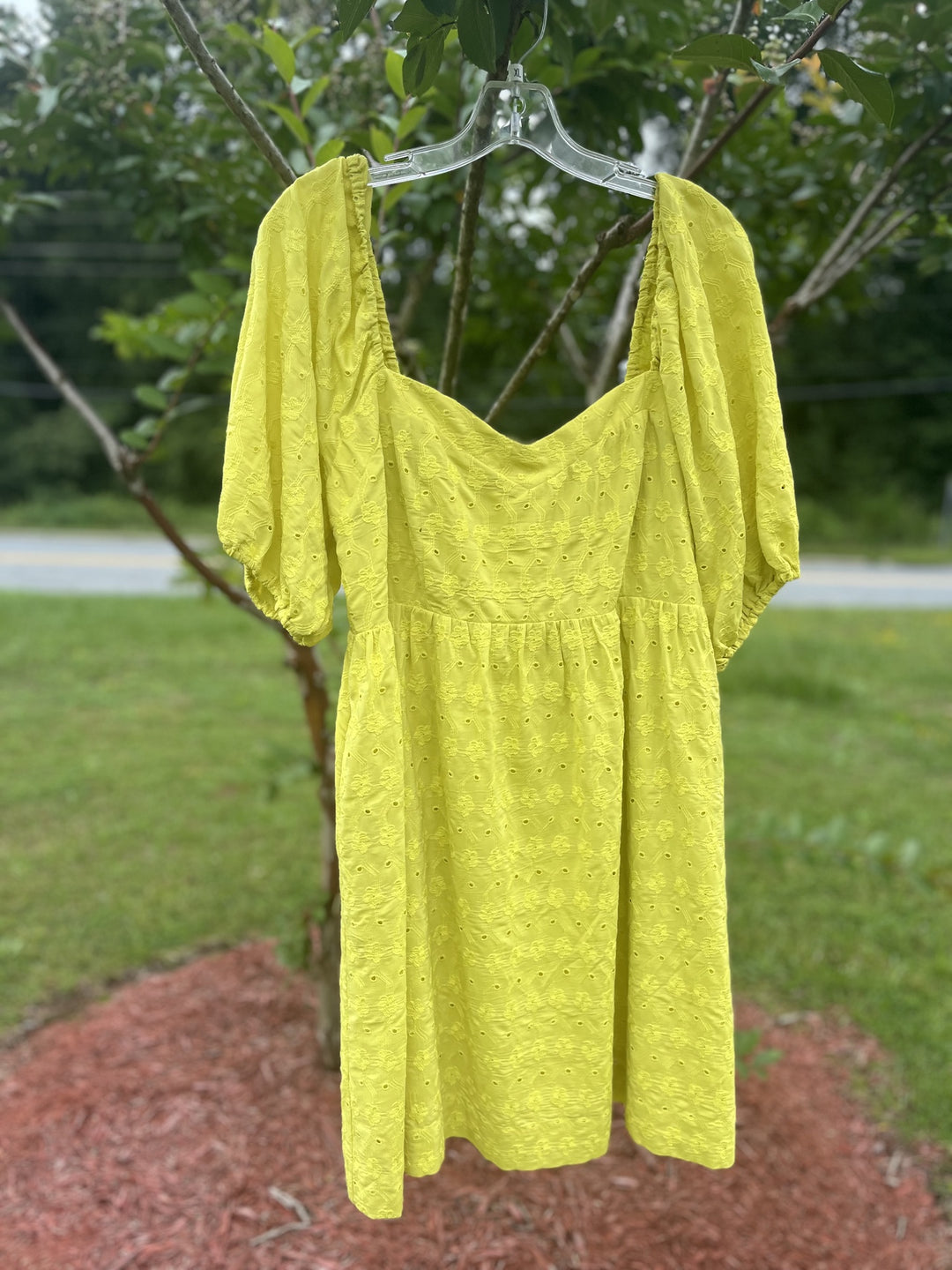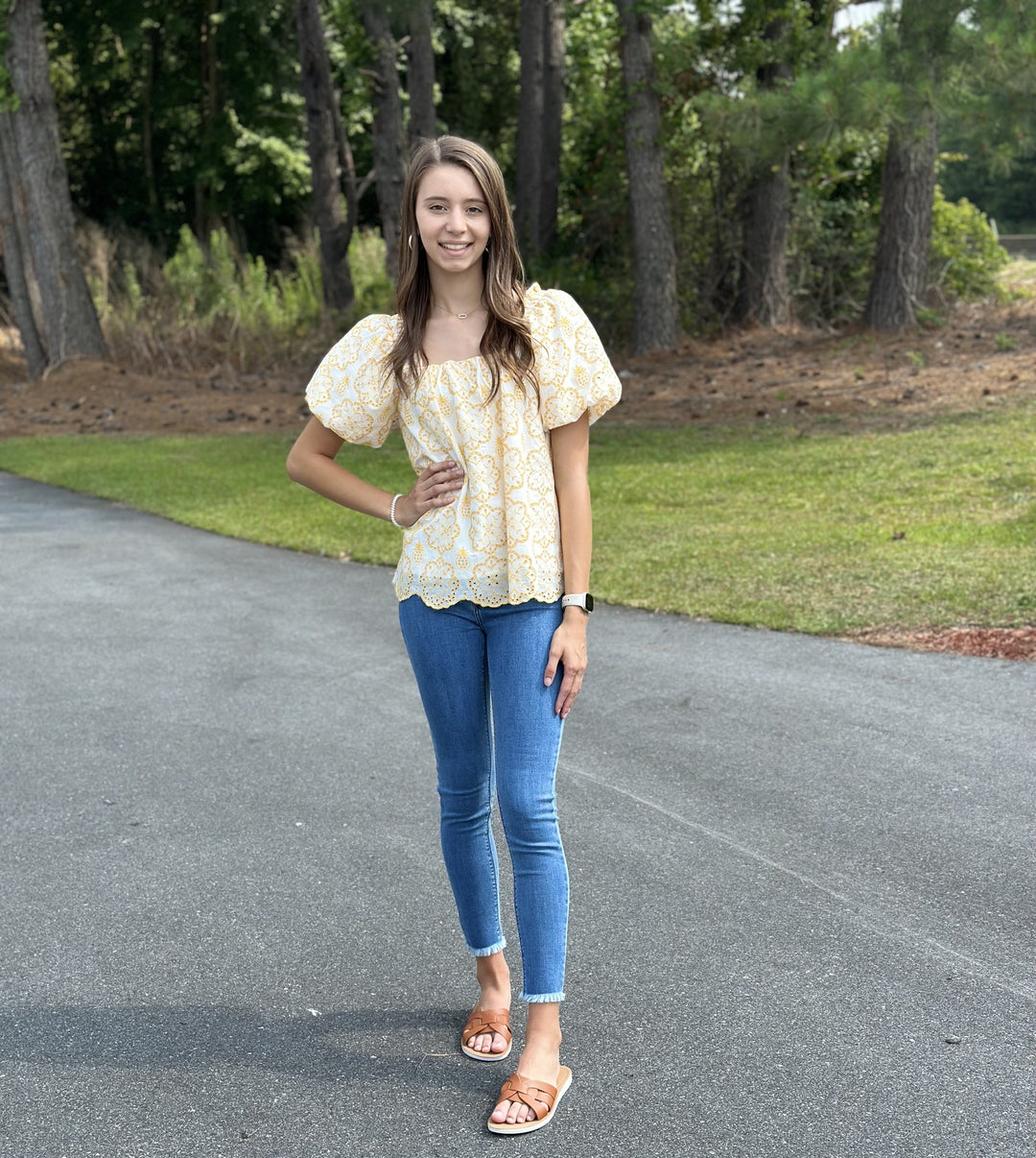 Jade Yellow Eyelet Puff Sleeve Top-XL Only