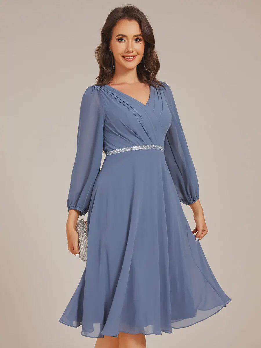 Dusty Blue Elegant Long Lantern Sleeves Wedding Guest Dresses