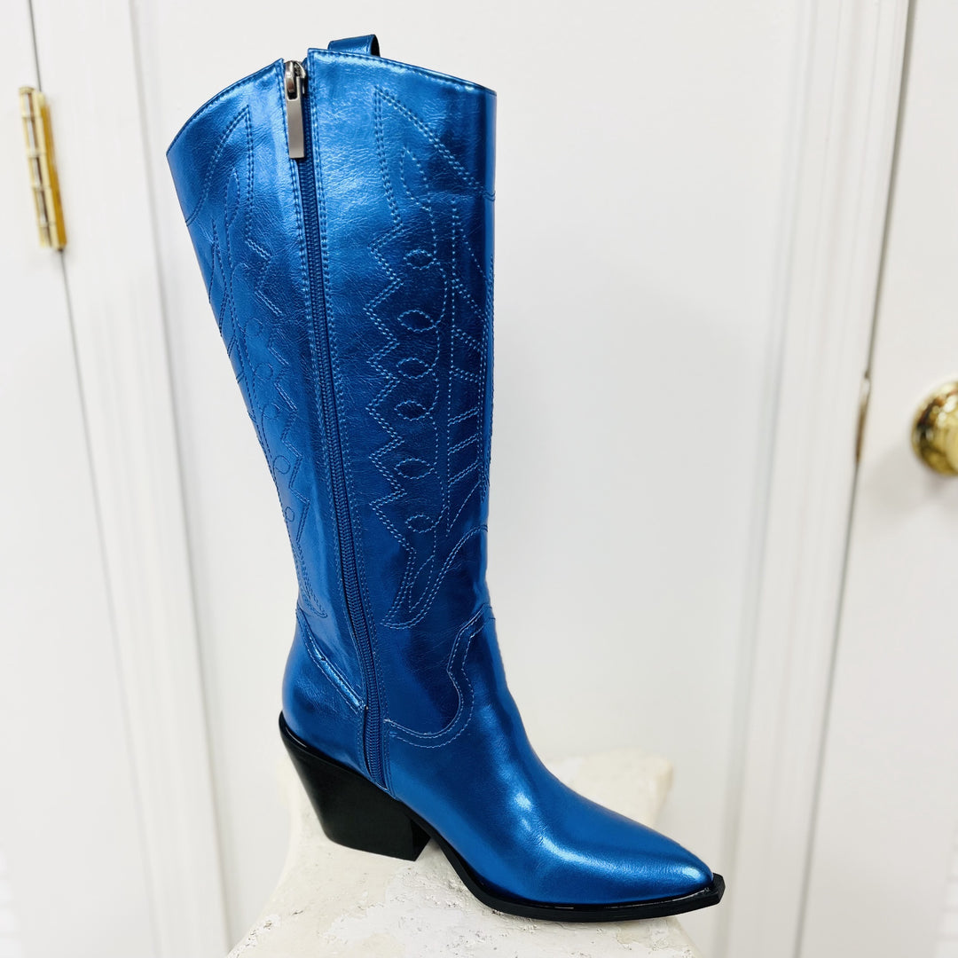 Corkys Hey Girl Electric Blue Metallic Howdy Tall Boot