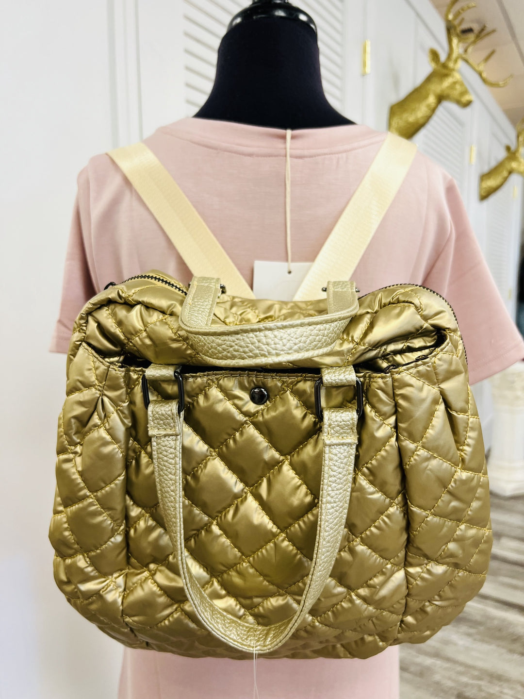 Gold Quilted Backpack