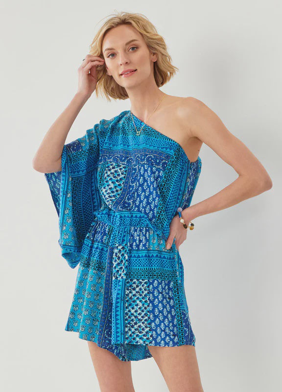 Charlie Paige Blue Patchwork One Shoulder Bloomers