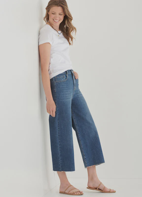 Cello Mid Rise Crop Flare Jean- Light Denim