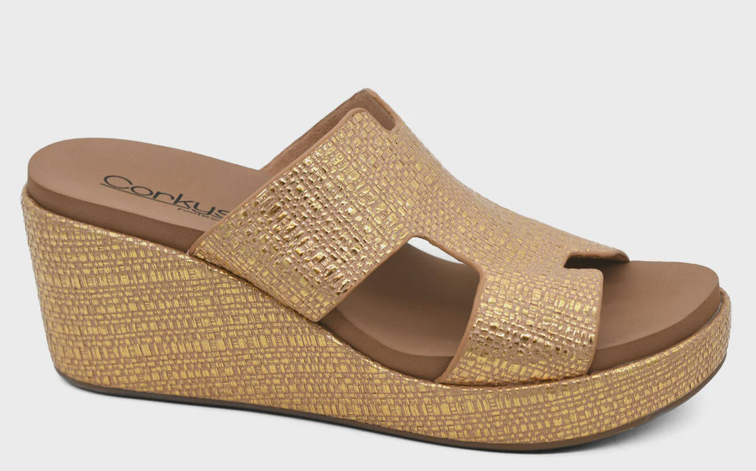Corky's Pucker Up Wedge- Gold Raffia