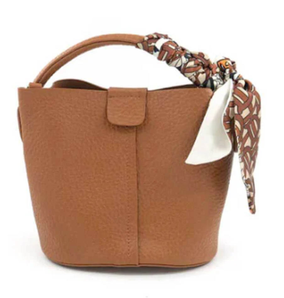 BC Bags Mini Bucket Bag with Scarf-Brown