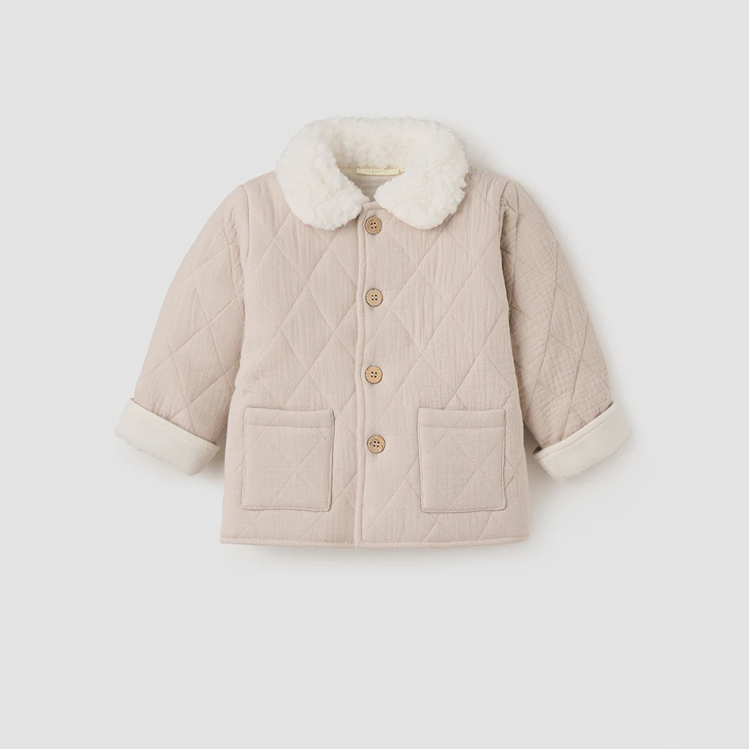 Elegant Baby Taupe Organic Muslin Quilted Jacket