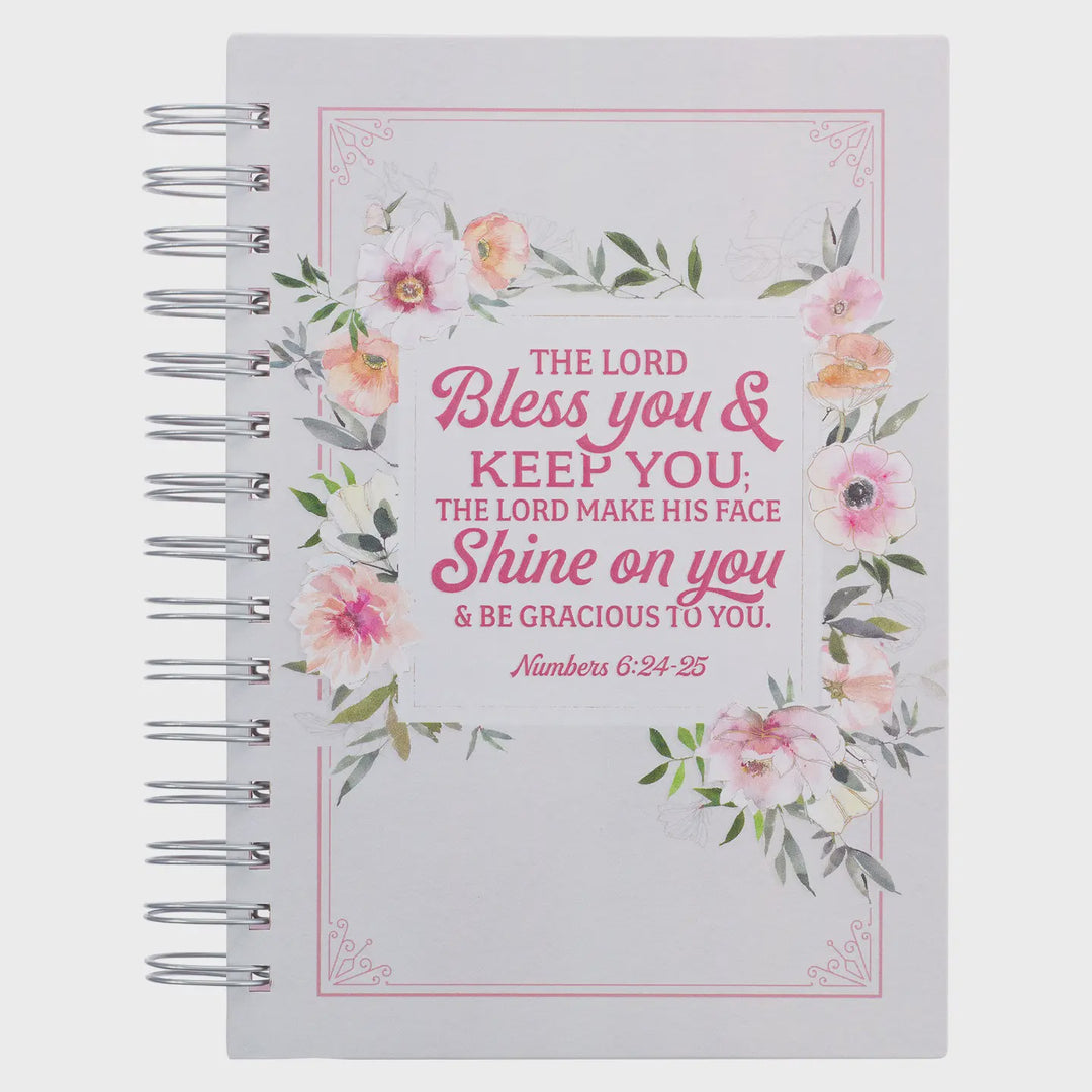 Christian Art Gifts Journal Wirebound Floral/Stripes Bless You Num. 6:24-25