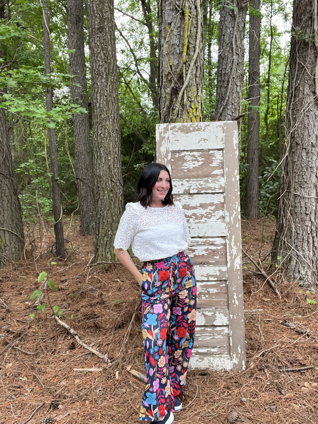 Vintage Floral Smocked Drawstring Pants
