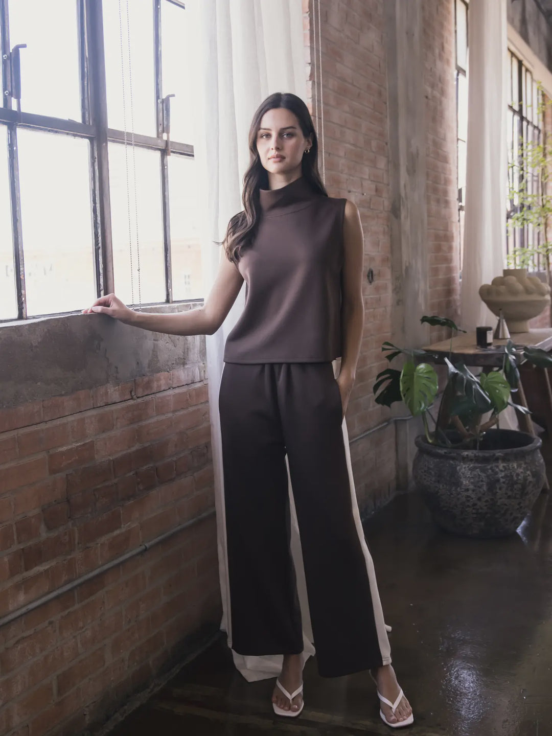 P. Cill Butter Modal Side Stripe Wide Leg Pants- Cocoa