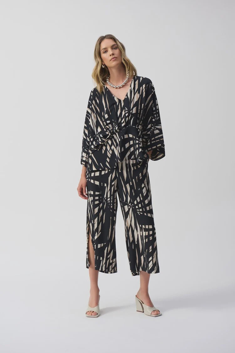 Joseph Ribkoff Woven Tropical Print Culotte Pants Black/Multi