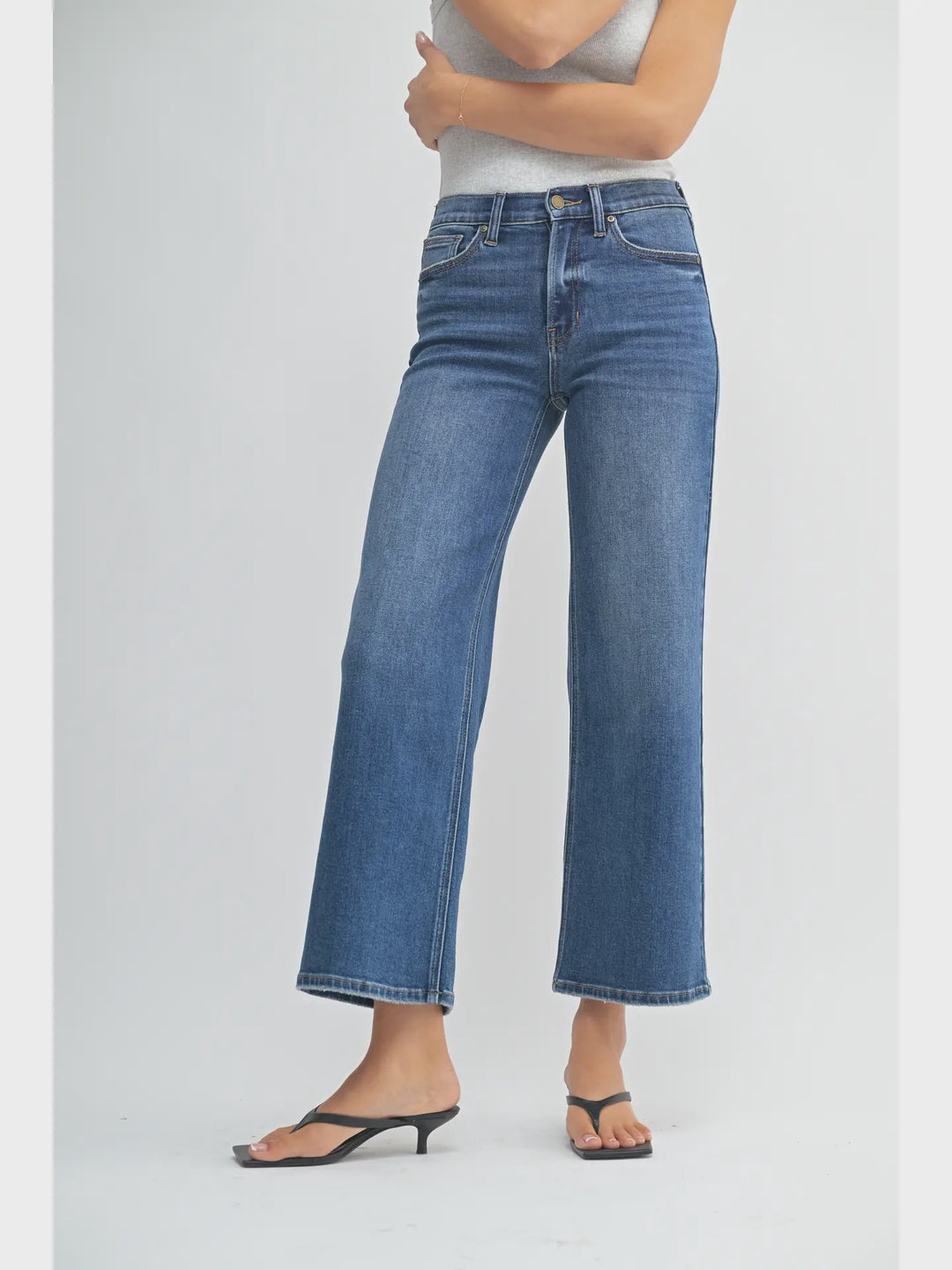 Zenana Teal Acid Washed High Waisted Cropped Straight Pants
