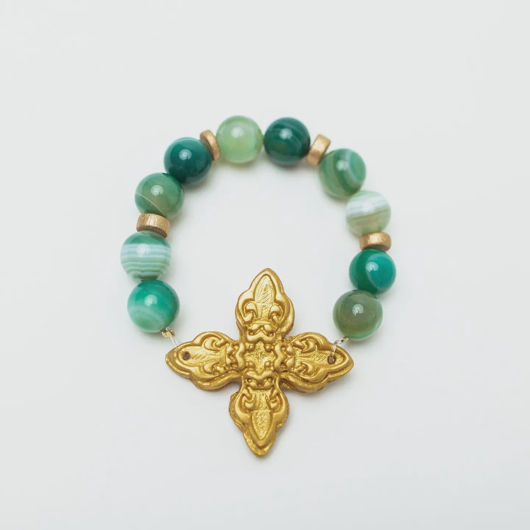 Hidden Truth Jewelry Green Stripe Agate with Kait Cross Bracelet