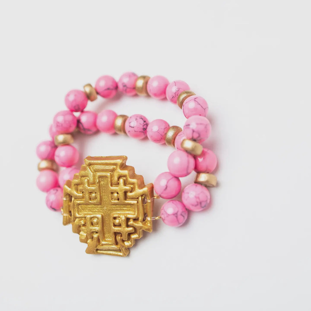 Hidden Truth Jewelry Bright Pink with Jerusalem Cross Bracelet