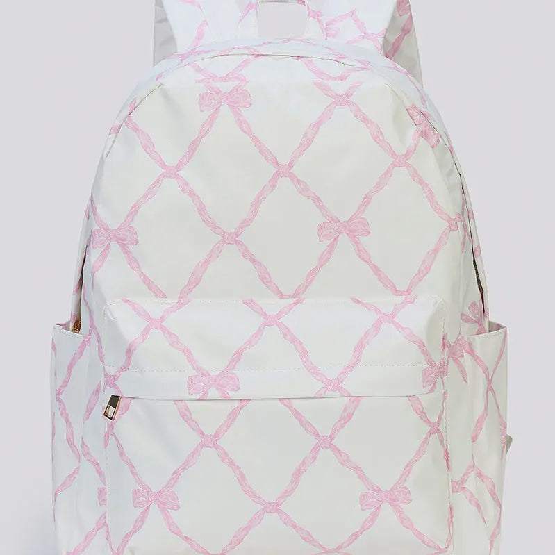 Sassy Kids Palace Girls Bow Printed Backpack- Pink/ White