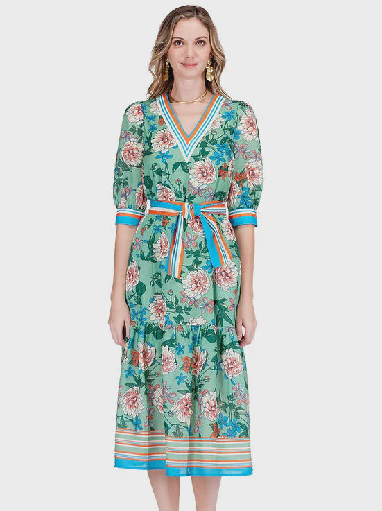 Jade Dahlia Border Trimmed V-Neck Maxi Dress