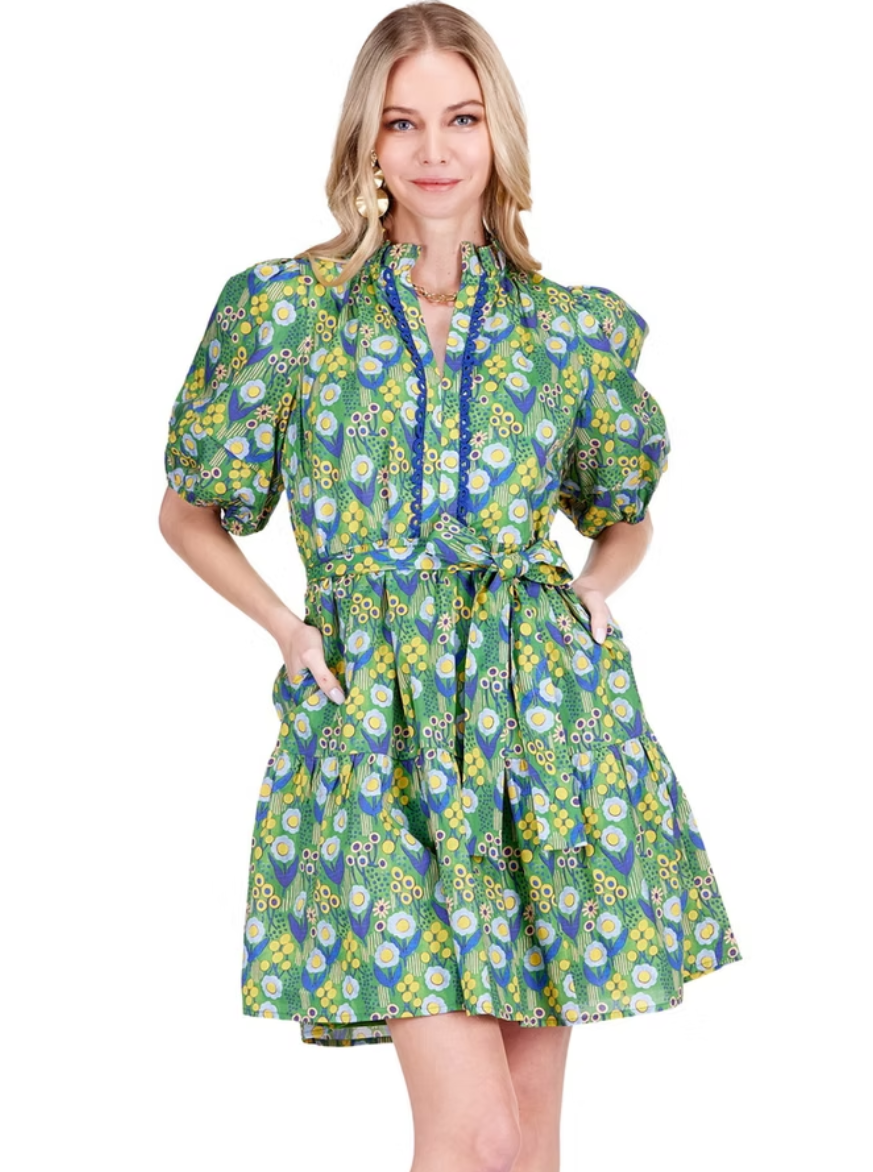 Joy Joy Golden Garden Puff Sleeve Tiered Dress