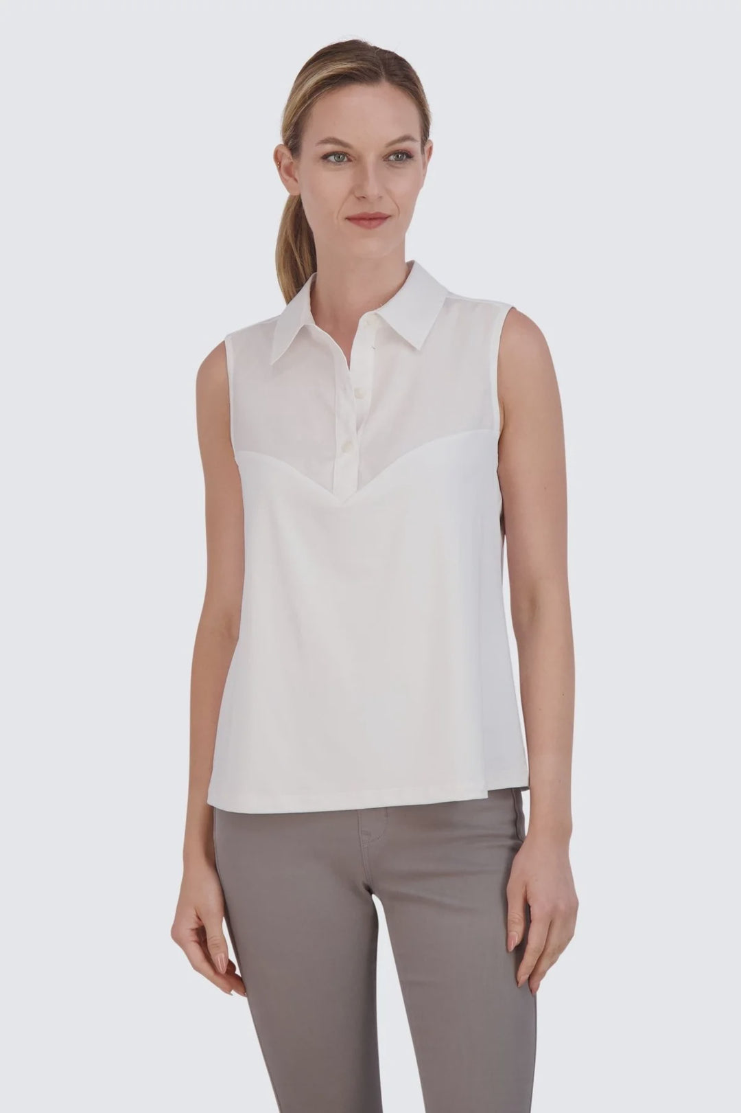 Foxcroft White Ricki Knit-Woven Sleeveless Layering Tank