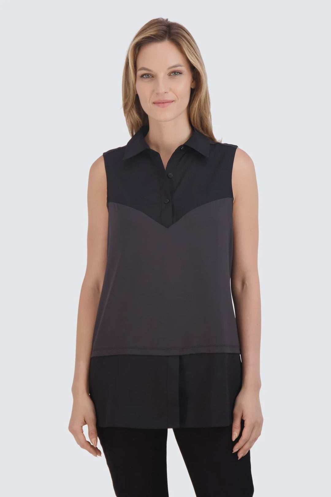 Foxcroft Black Sasha Knit-Woven Sleeveless Layering Tunic