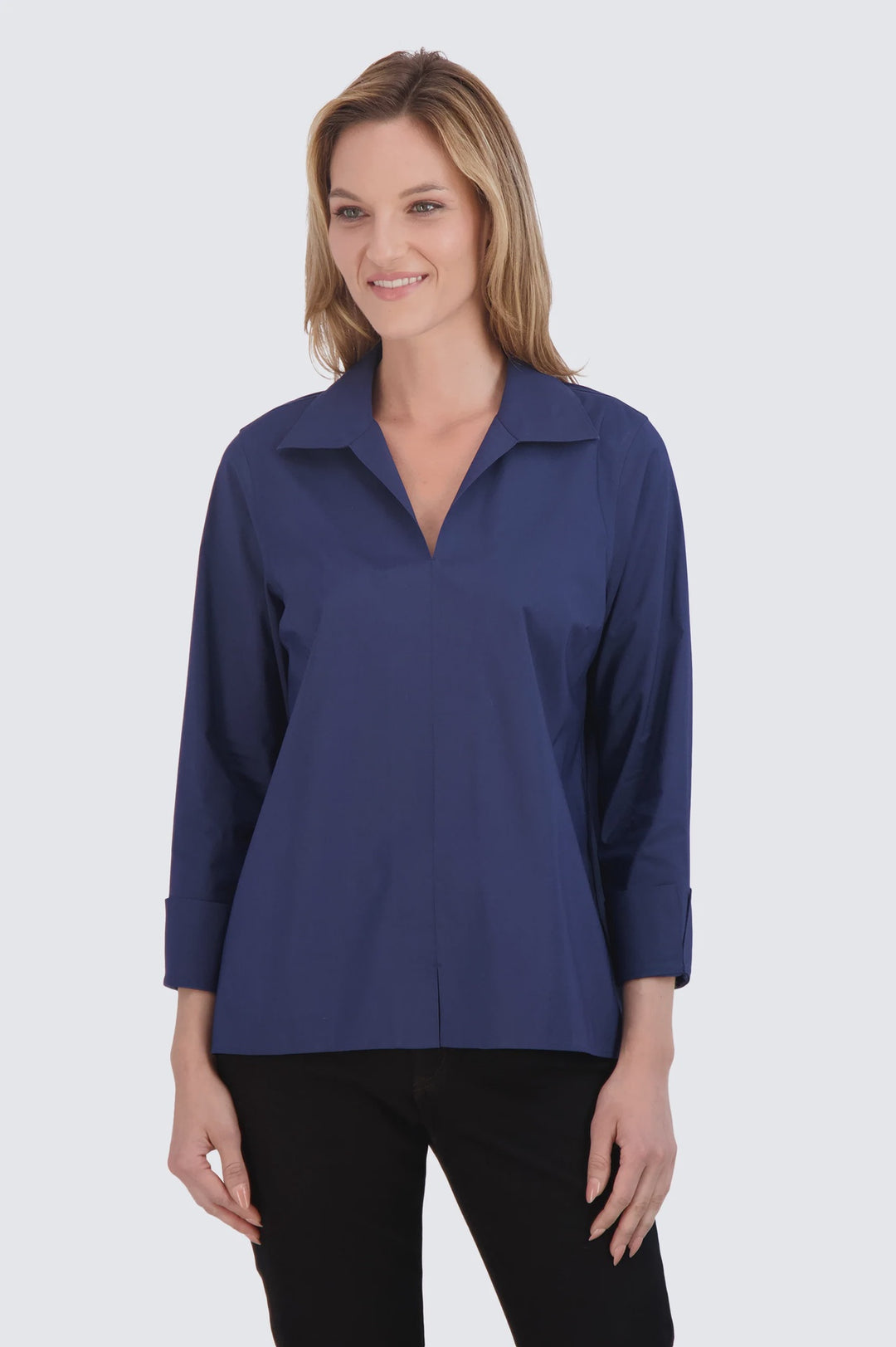 Foxcroft Navy Agnes Stretch No Iron Popover Shirt