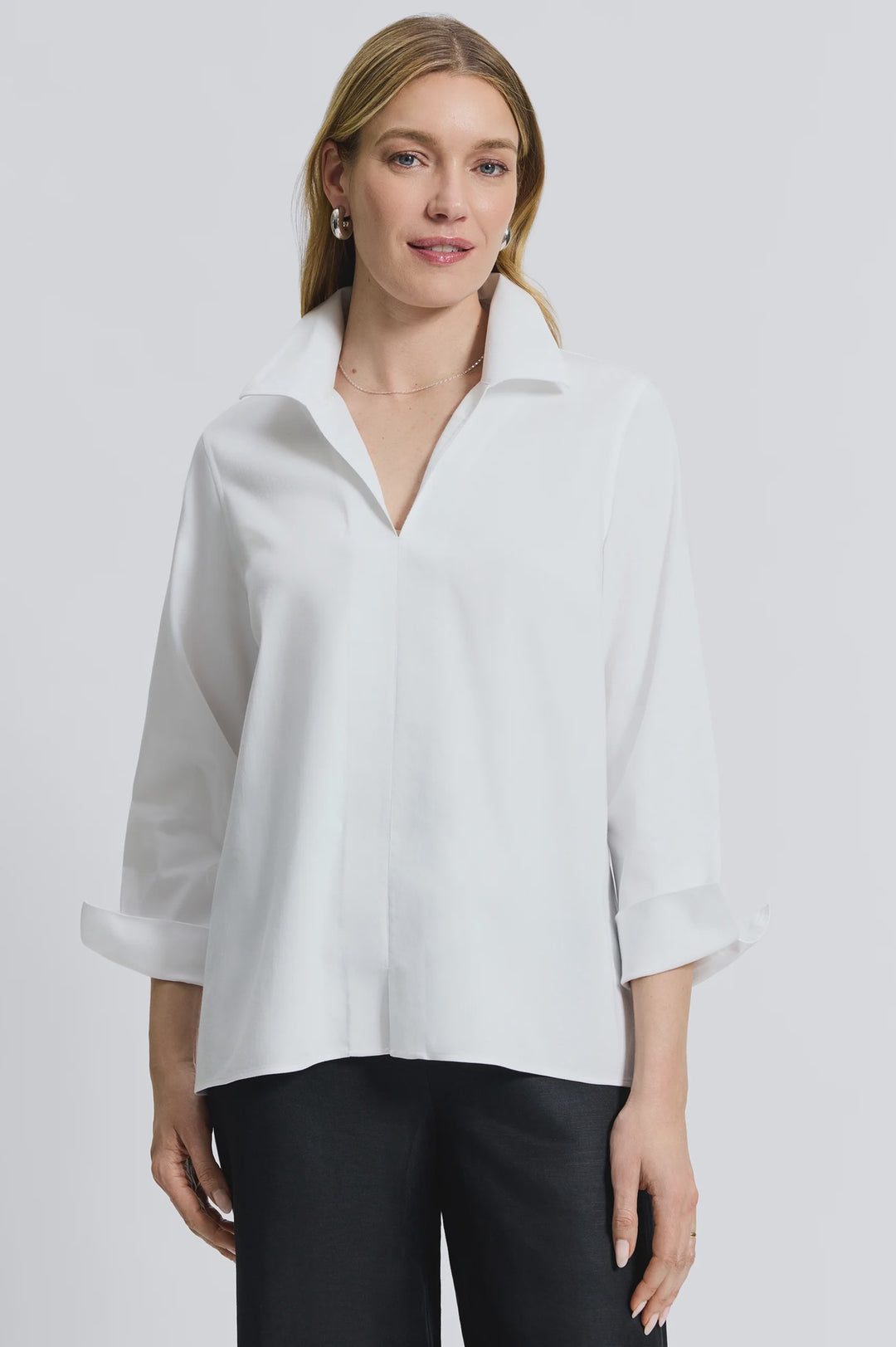 Foxcroft White Agnes No Iron Stretch Long Sleeve Popover Shirt