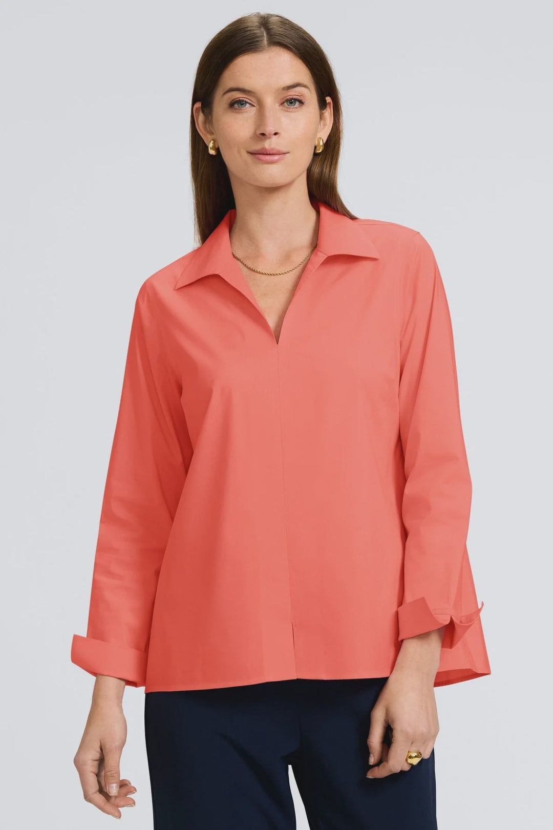 Foxcroft Agnes No Iron Stretch Long Sleeve Popover Shirt- Tangerine