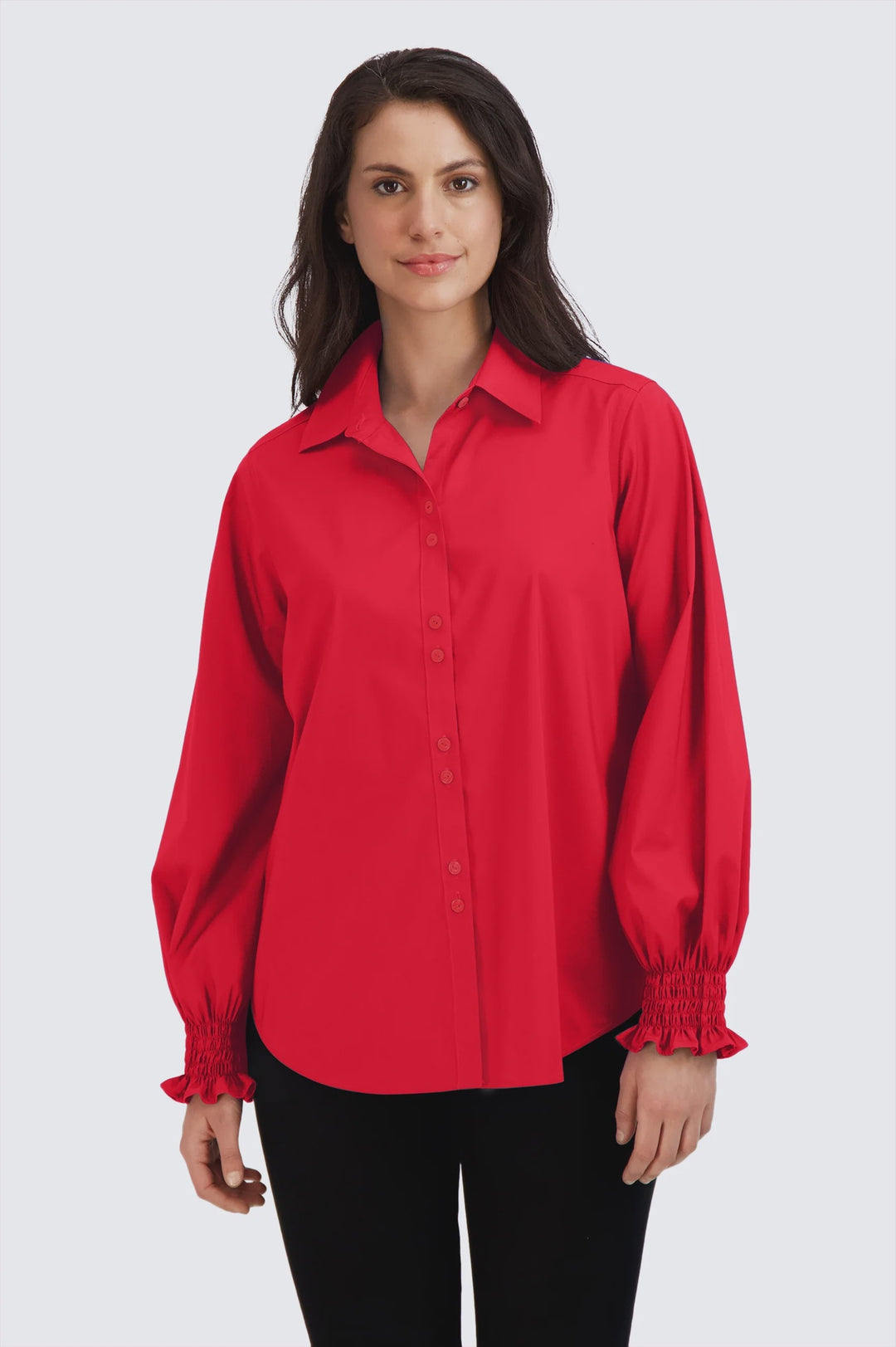 Foxcroft Simply Red Tammy No Iron Stretch Long Sleeve Popover Shirt