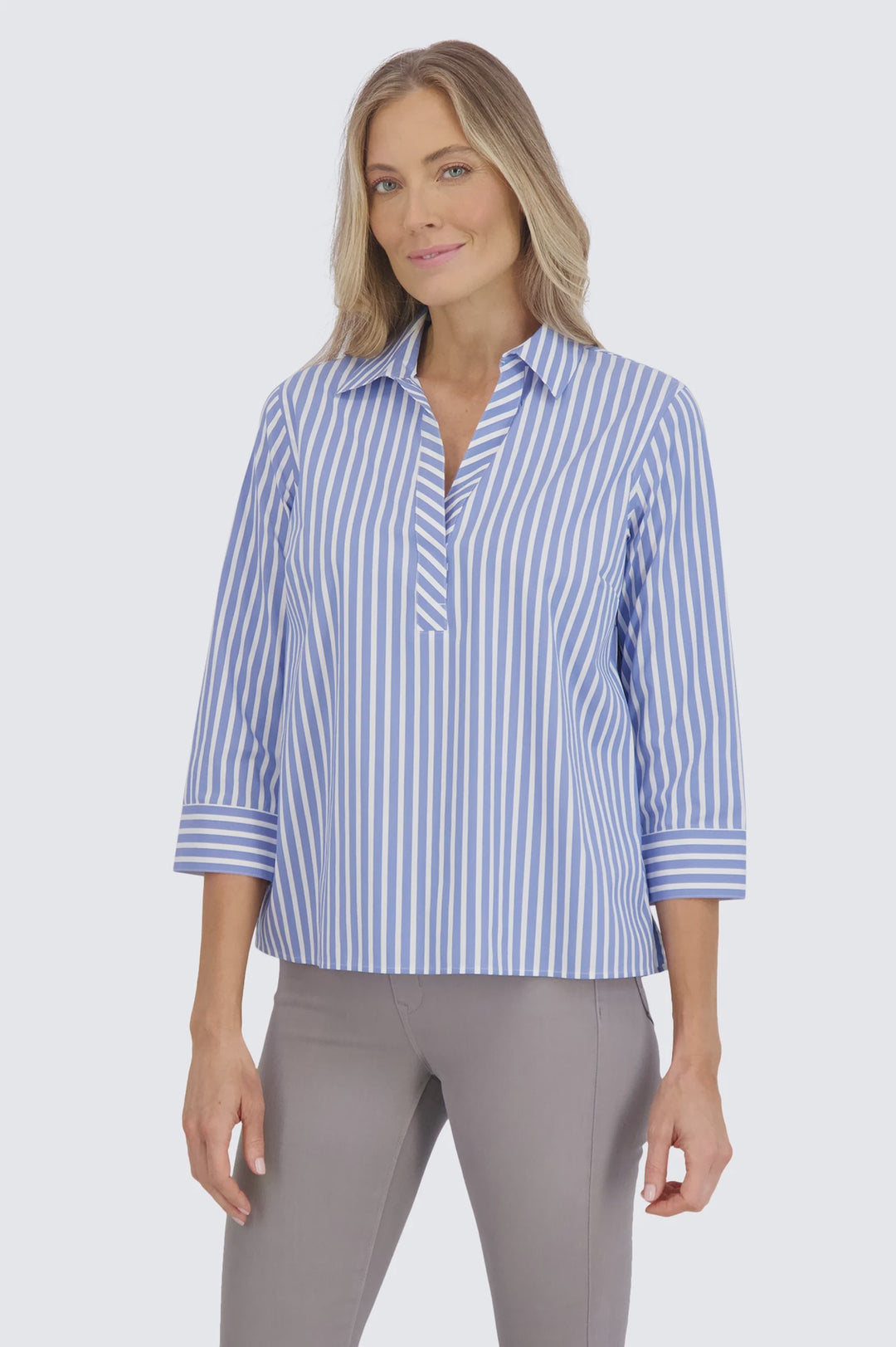 Foxcroft Sophia Stretch No Iron Stripe Popover Shirt