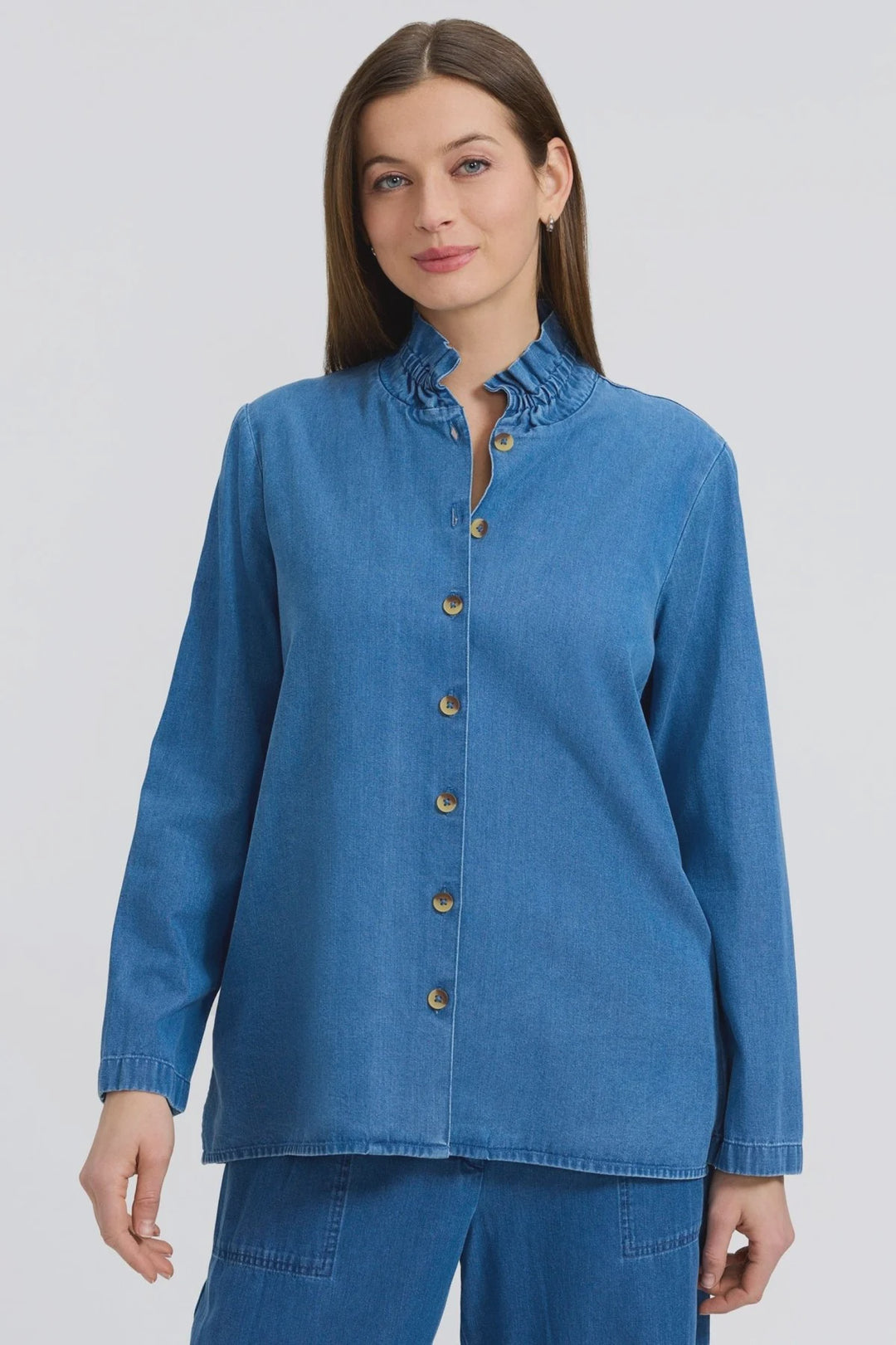 Foxcroft Medium Wash Carolina Tencel® Denim Long Sleeve Shirt Jacket