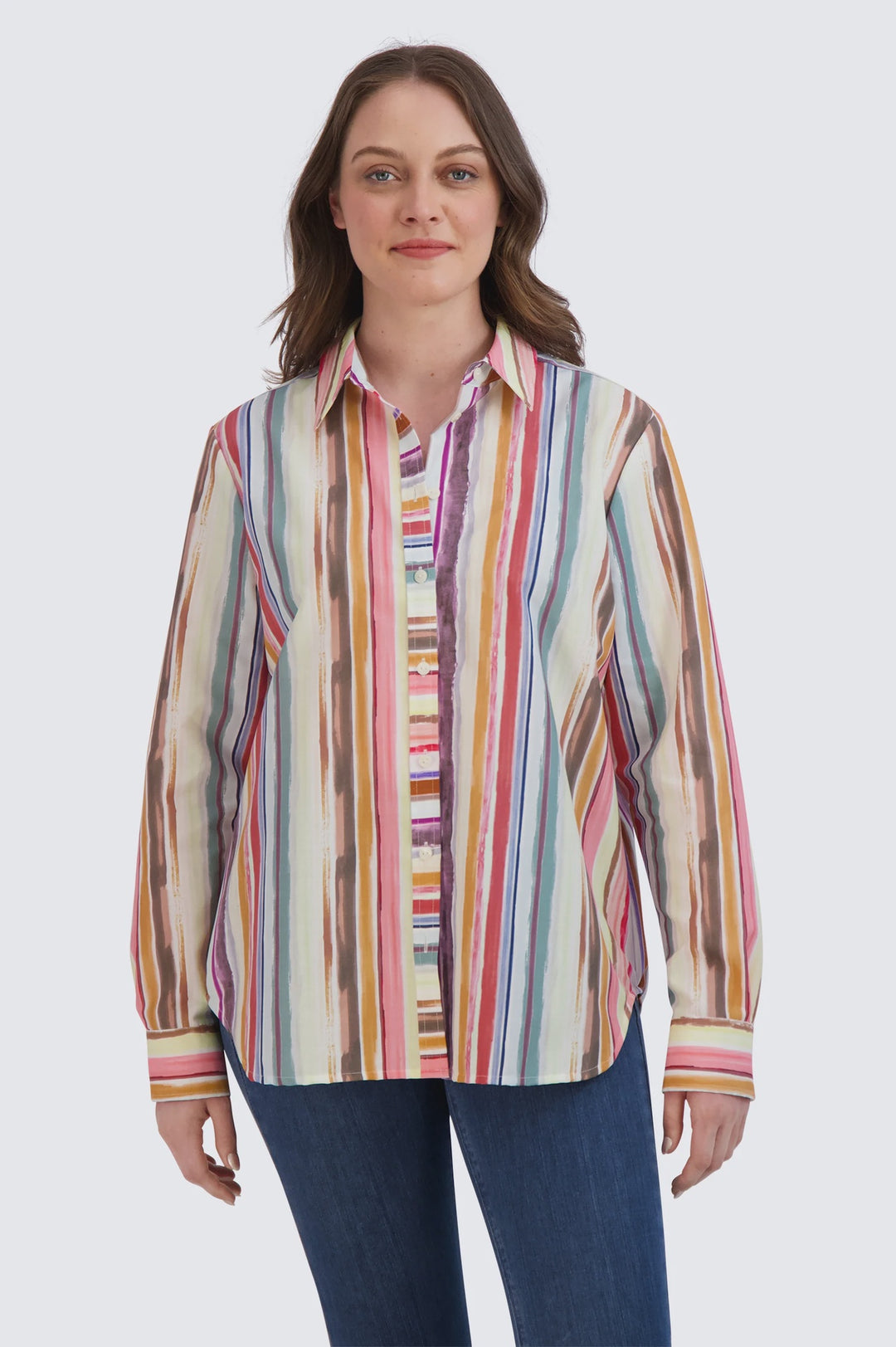 Foxcroft Boyfriend No Iron Watercolor Stripe Tunic