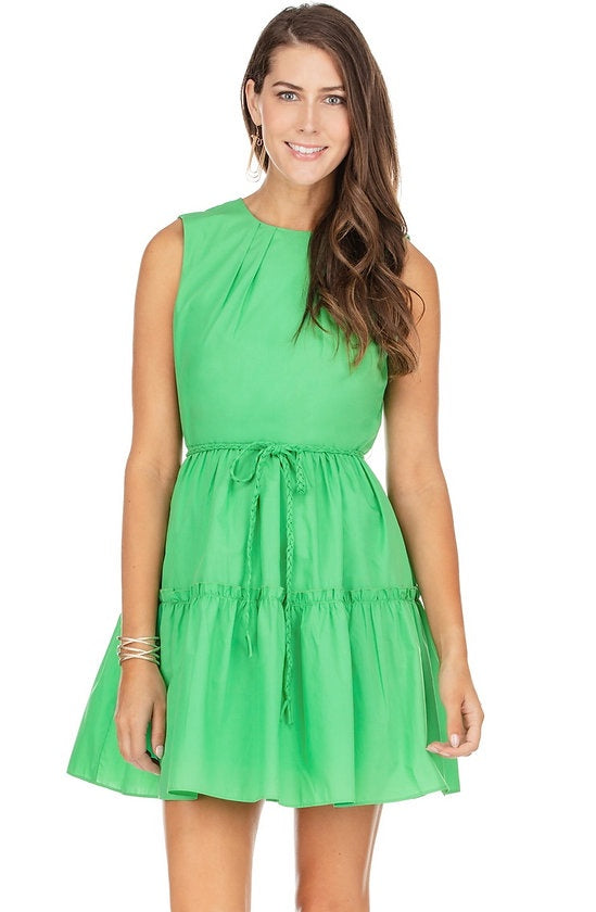 Jade Sleeveless Green Dress with Braided Belt
