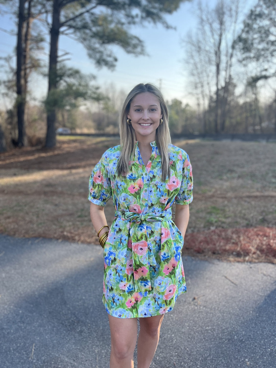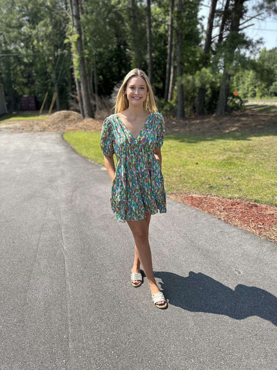 Joy Joy Golden Garden Puff Sleeve Tiered Dress