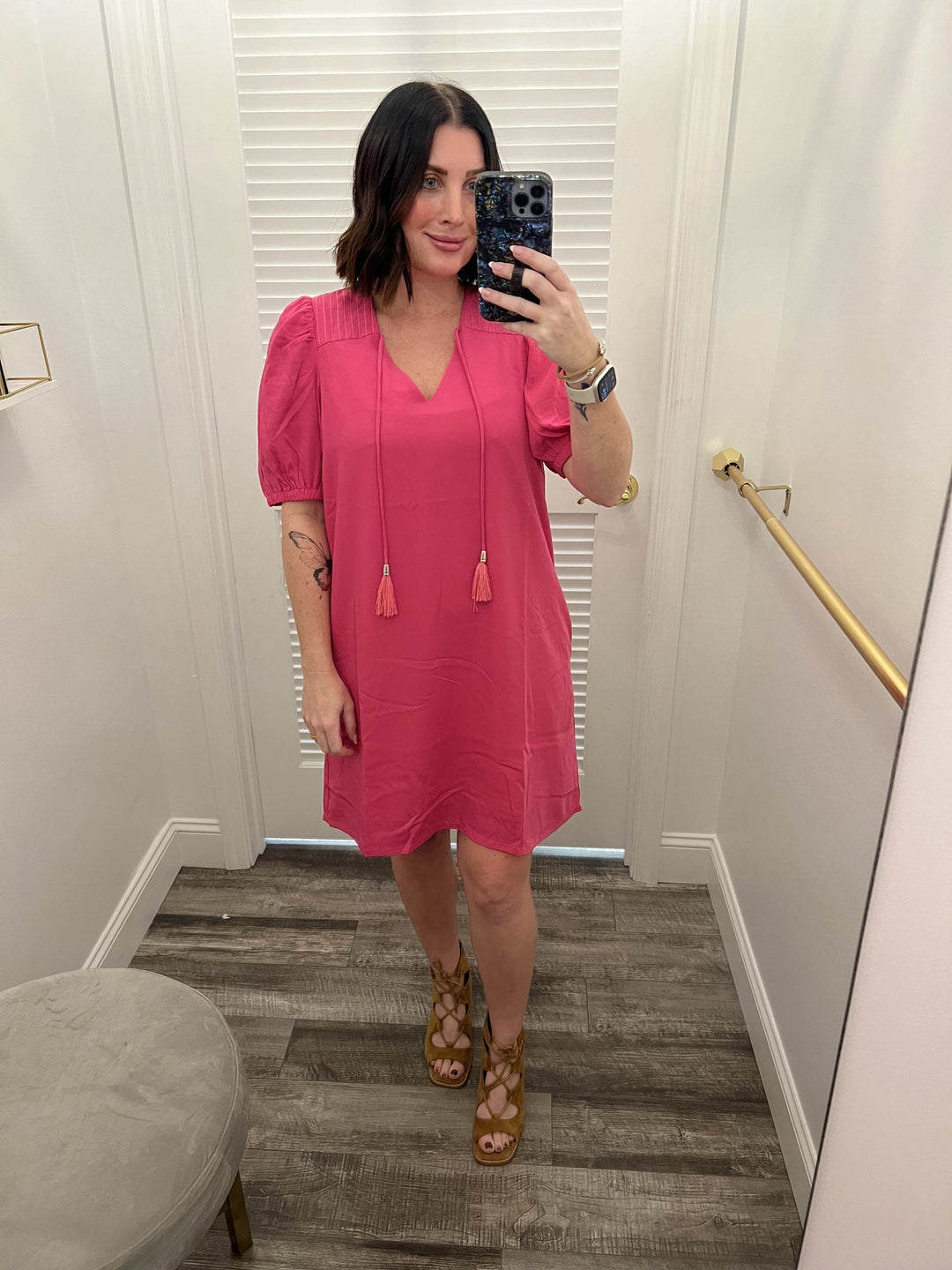 XSmall Only- Jade Shoulder Stitch Dress-Fuschia
