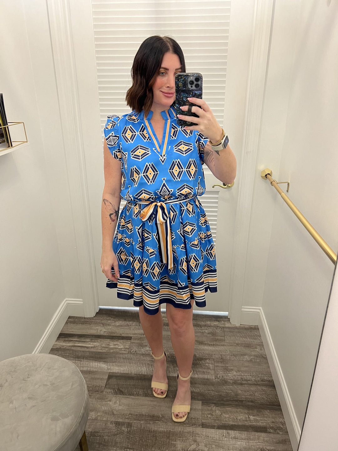Jade Bold Blossom Ruffle Sleeve V-Neck Dress