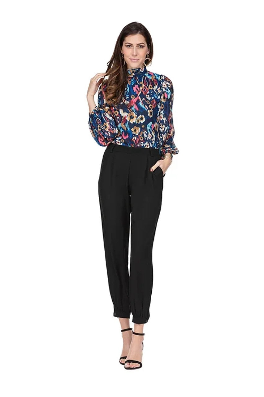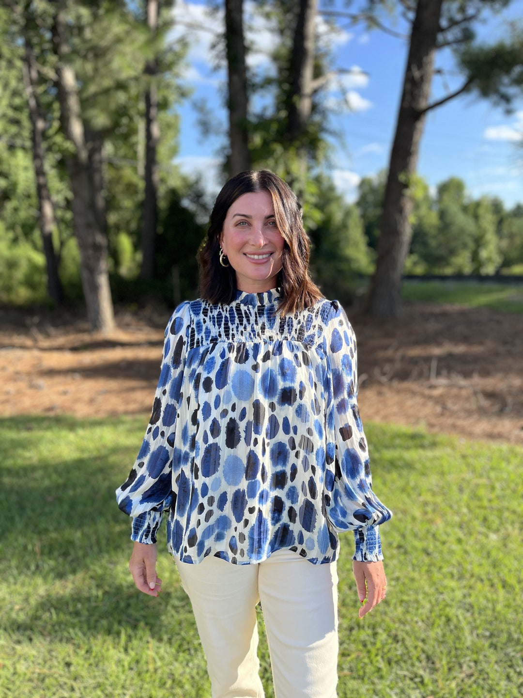 Jade Cinched Mock Neck Blouse Multi Abstract