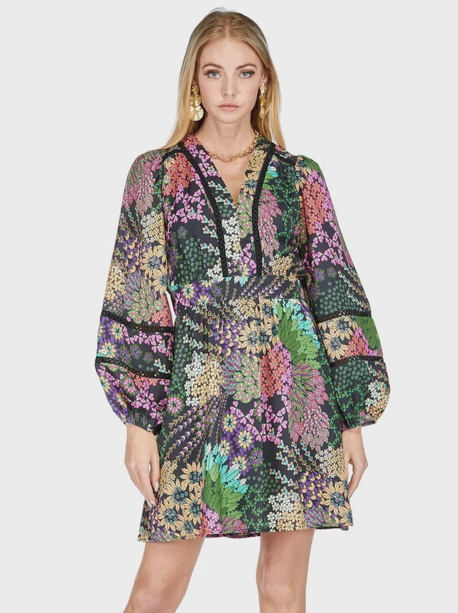 Joy Joy Golden Garden Puff Sleeve Tiered Dress