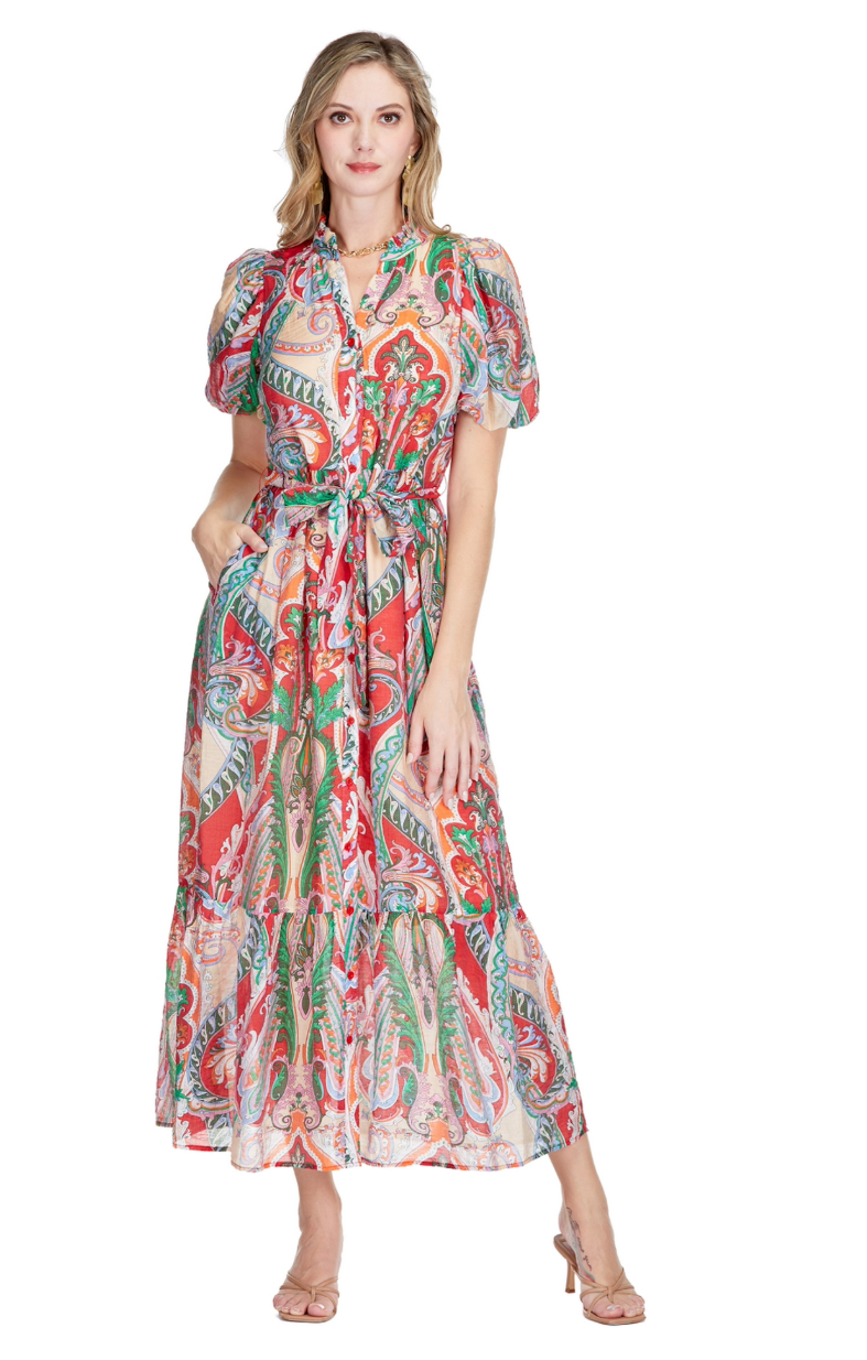 Jade Boho Fun Puff Sleeve Button Front Maxi