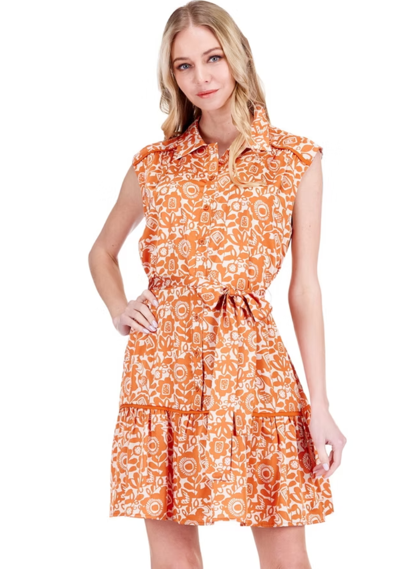Joy Joy Tangerine Tango Front Placket Trimmed Shirt Dress