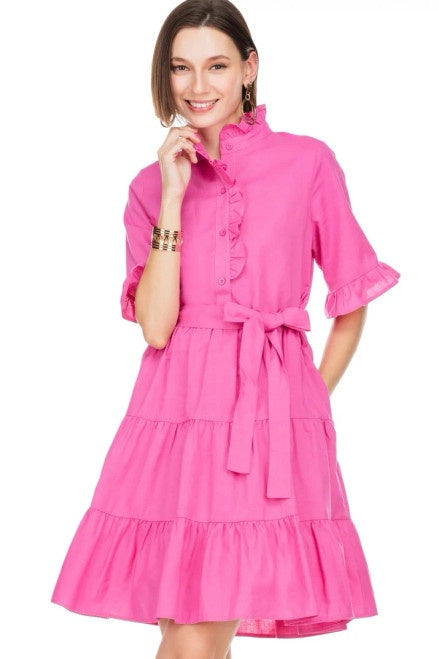 Jade Pink Button Up Dress With Belt- XSmall Only