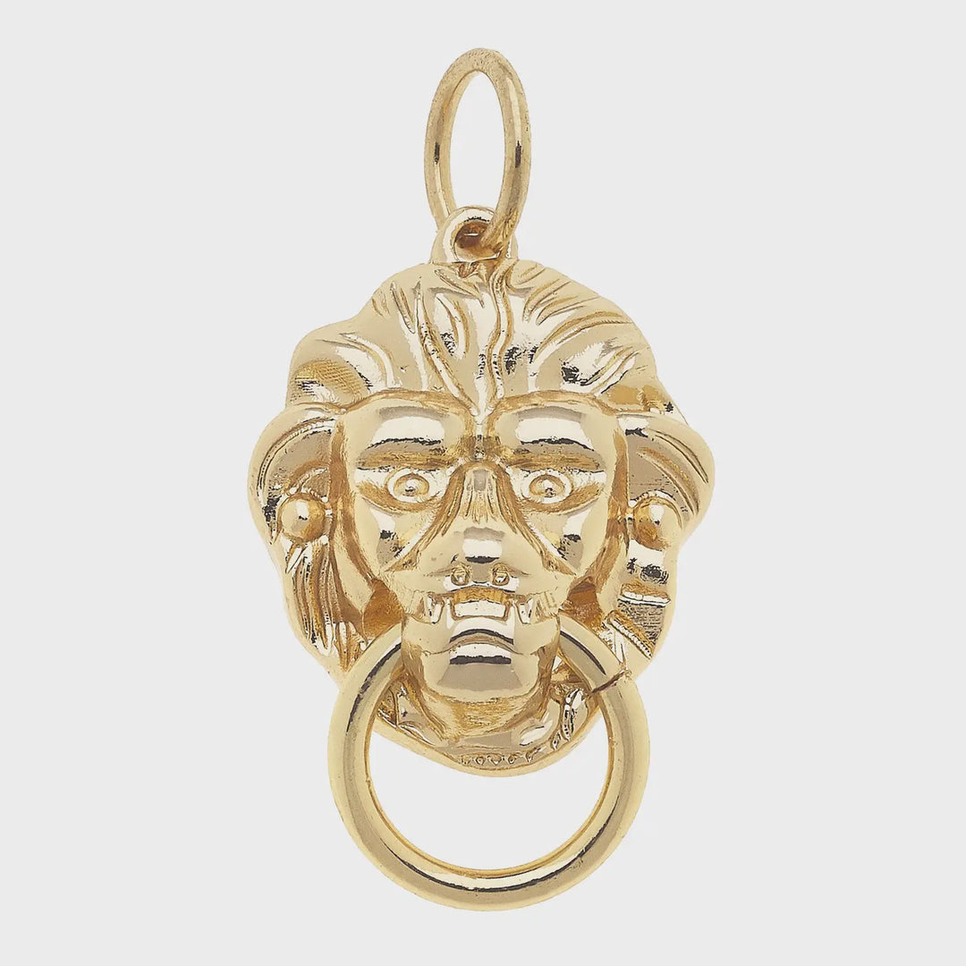 Canvas Lioness Door Knocker Charm in Shiny Gold
