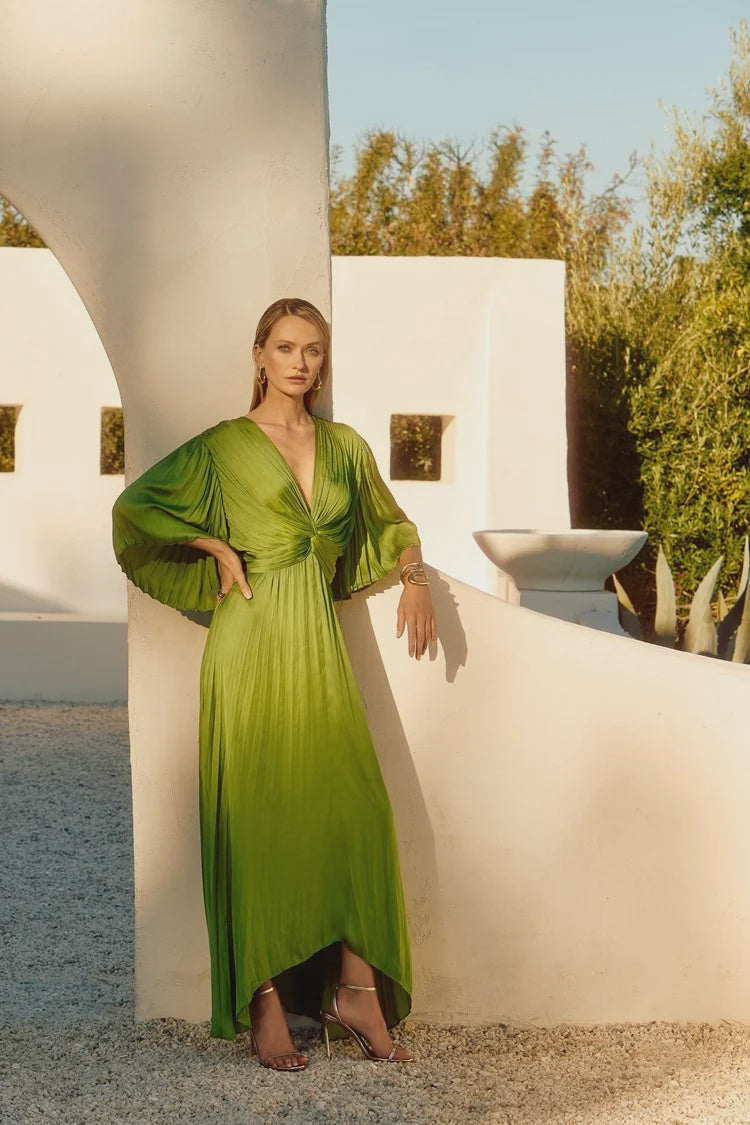Joseph Ribkoff Greenery Pleated Satin Midi Dress