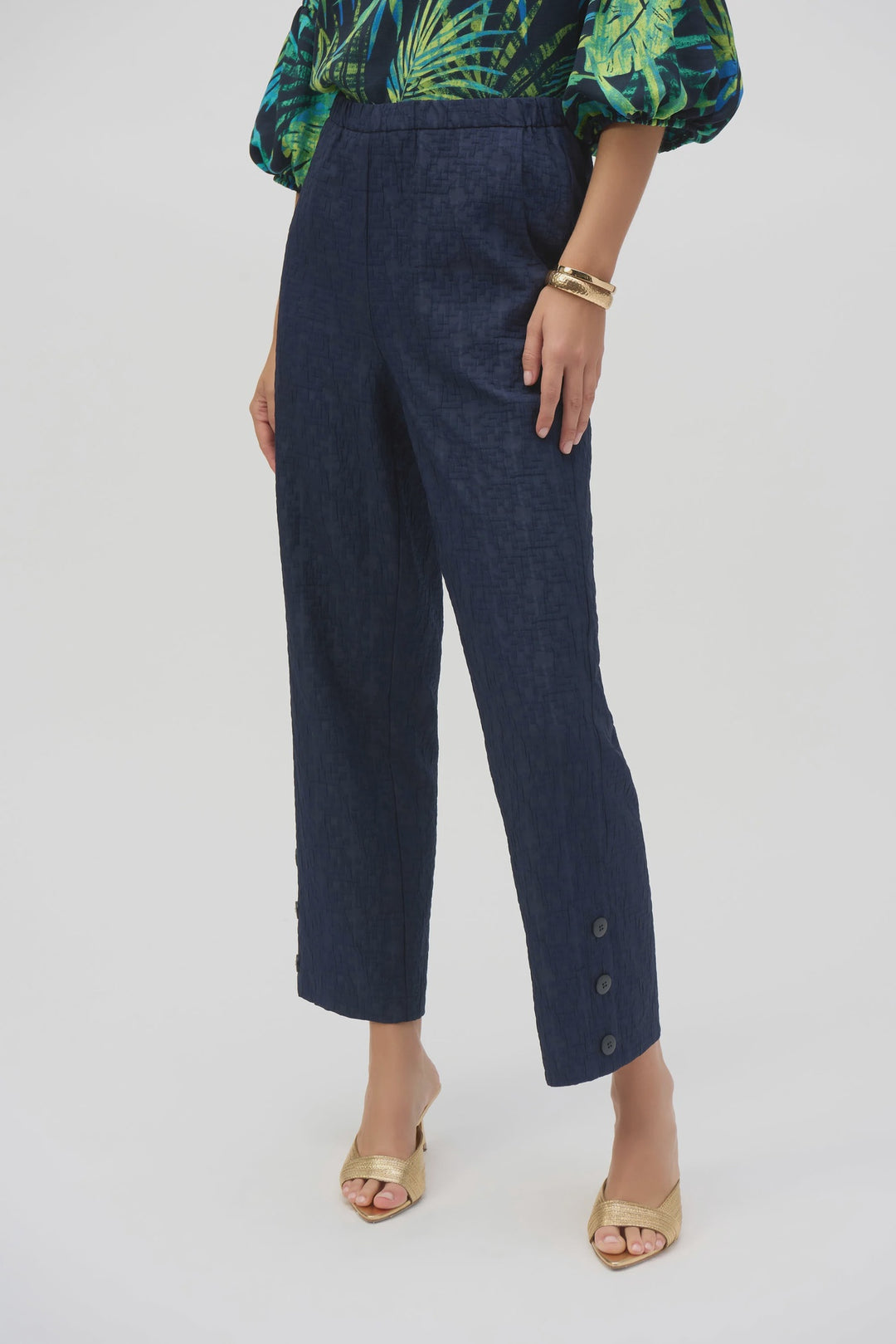 Joseph Ribkoff Jacquard Pull-On Wide-Leg Pants- Midnight Blue