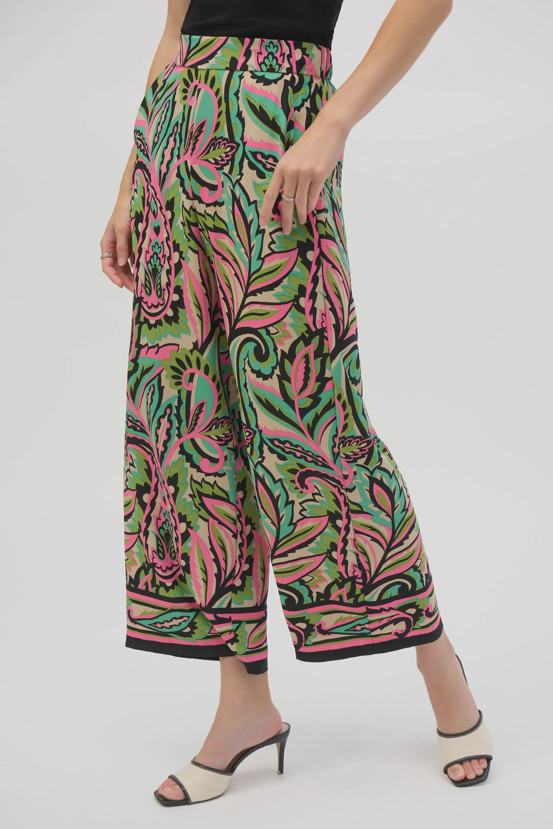 Joseph Ribkoff Woven Paisley Print Wide-Leg Pants- Black/Multi
