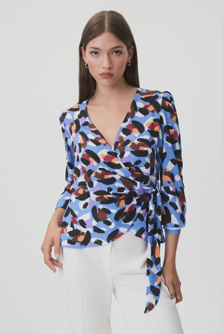Joseph Ribkoff Leopard Georgette Wrap Top
