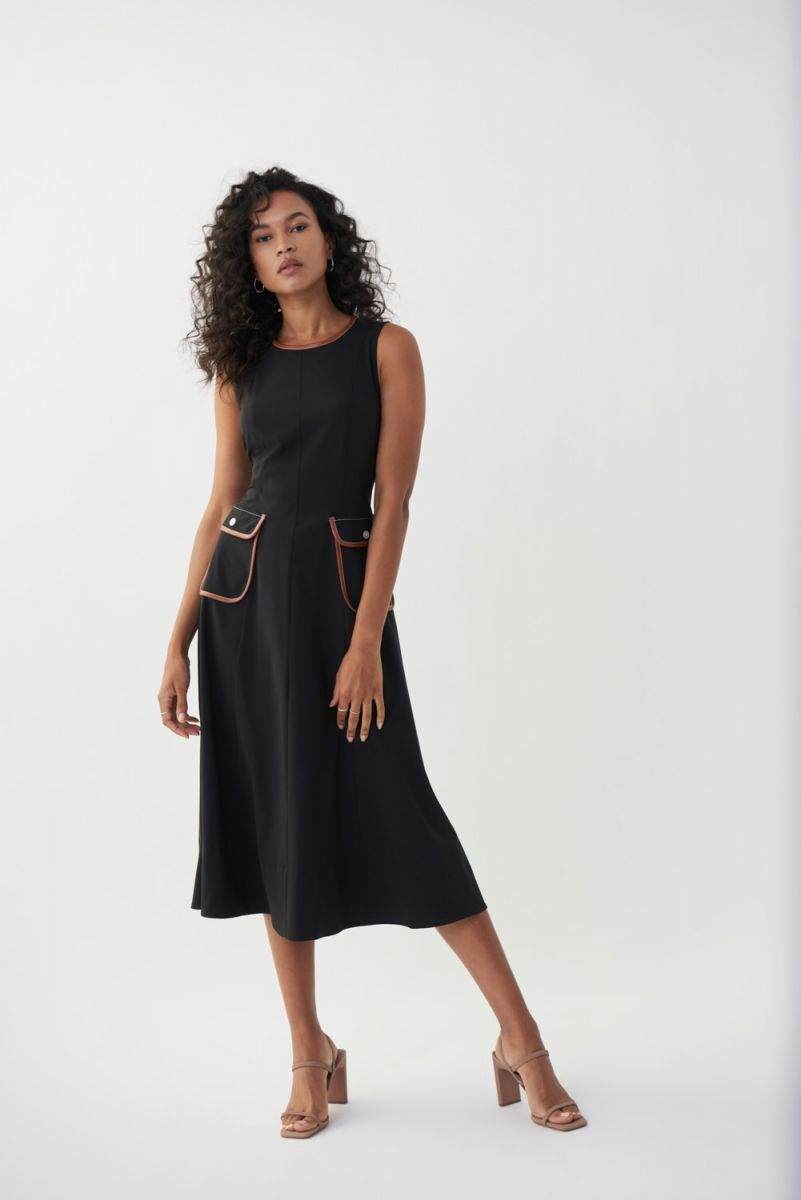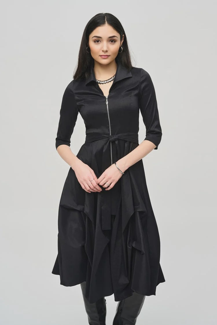 Joseph Ribkoff Black Stretch Taffeta Dress With Waist Sash