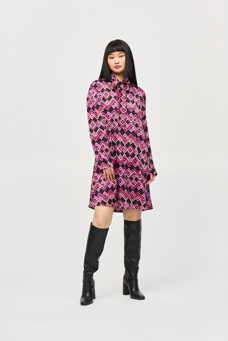Joseph Ribkoff Satin Geometric Print A-Line Dress