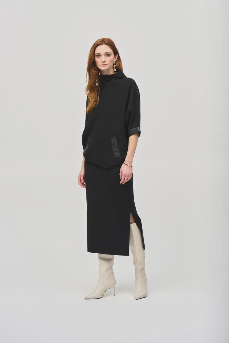 Joseph Ribkoff Black Sweater Knit Midi Skirt