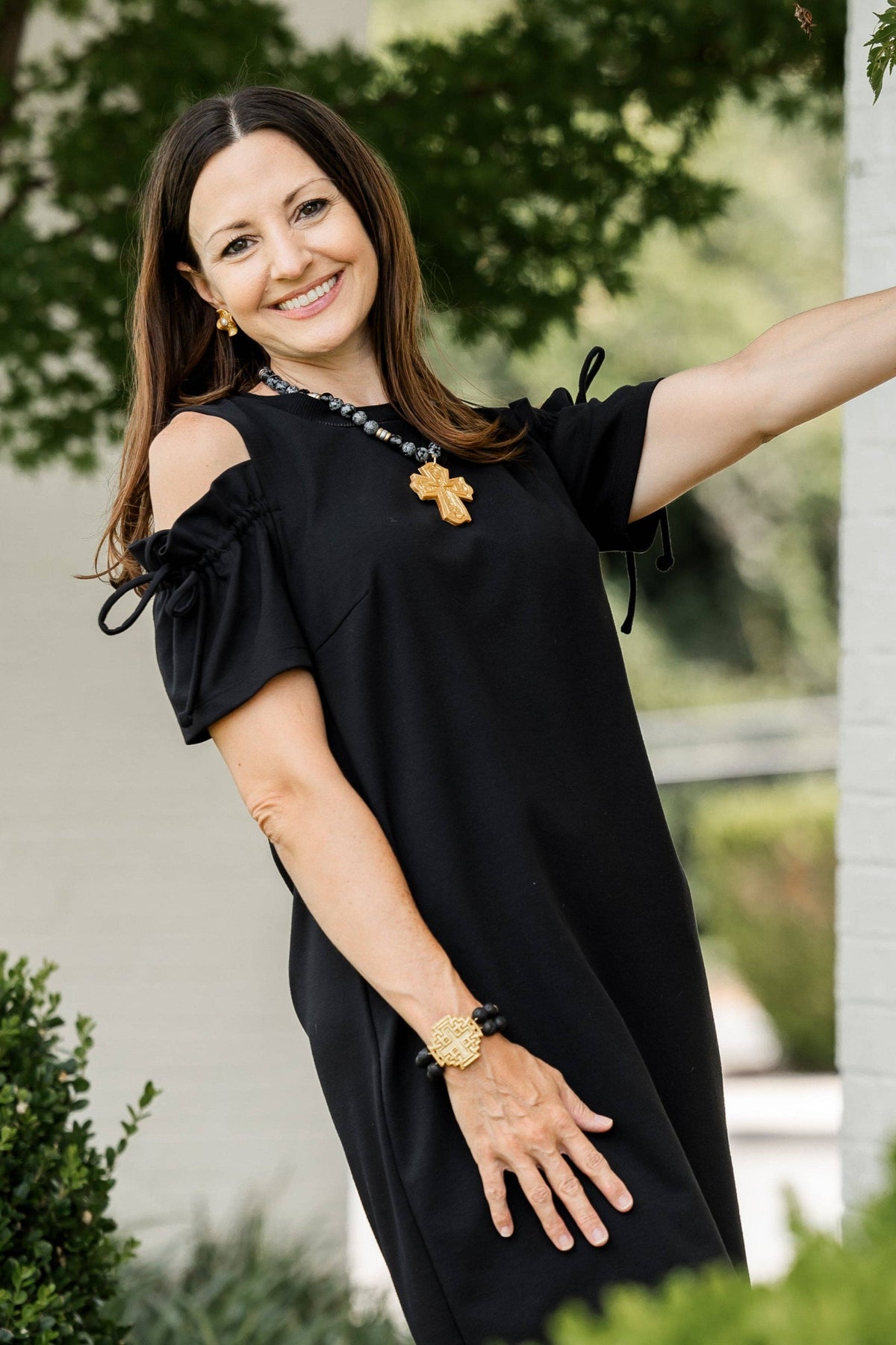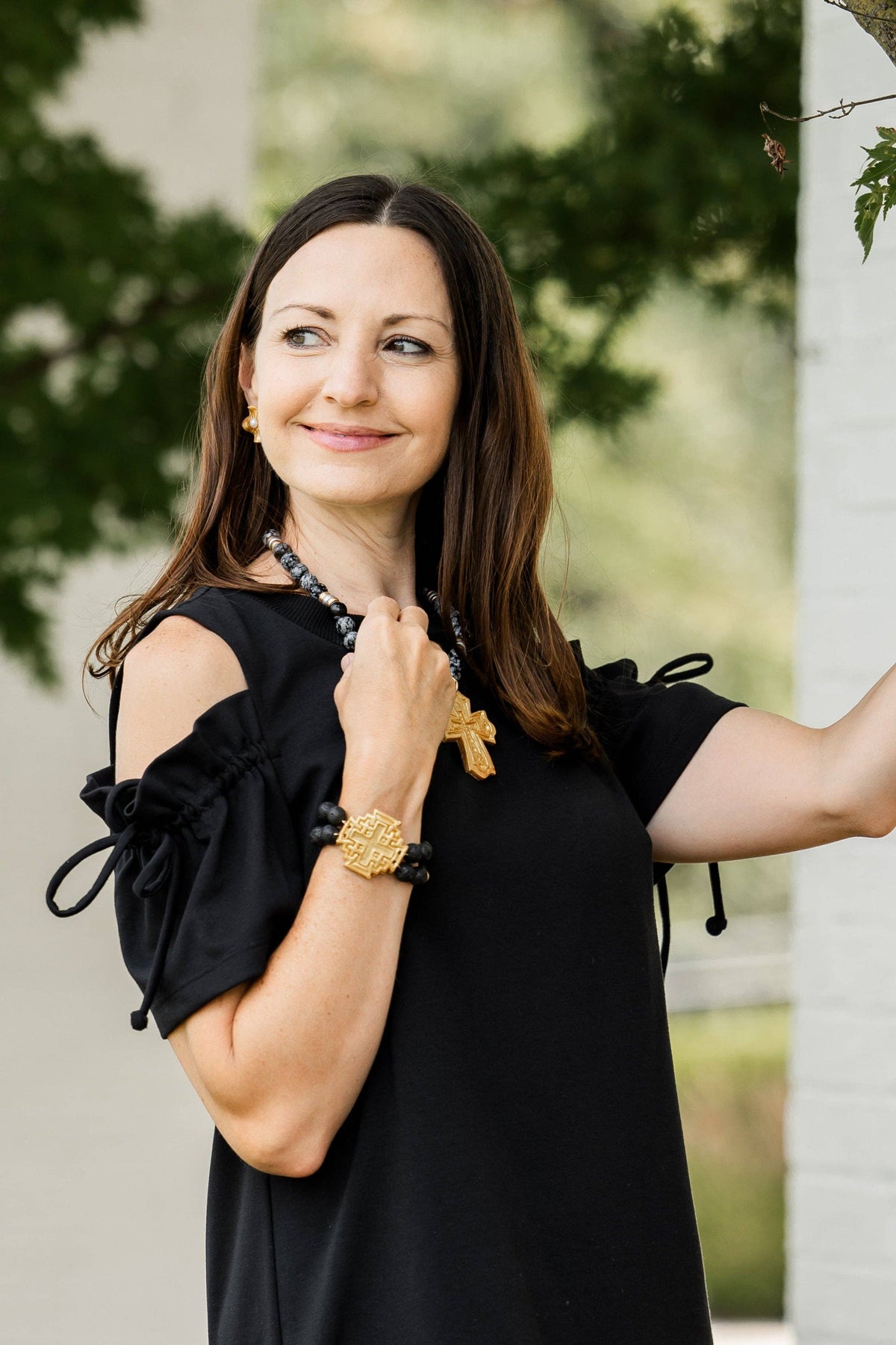 Black Lava with Jerusalem Cross Bracelet Scripture on the back: Philippians 4:13, "I can do all things thru Christ."