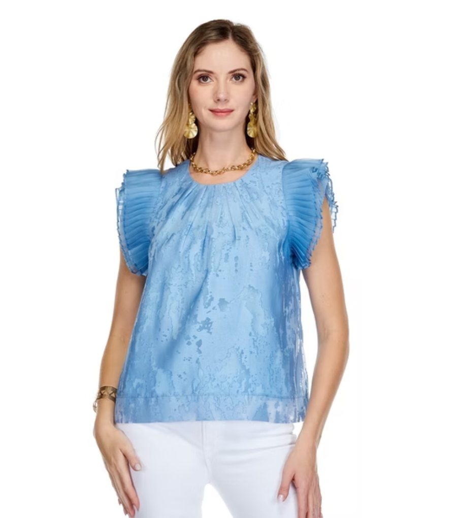Lior Blythe White Round Neck Ribbon Ruffle Sleeve Blouse