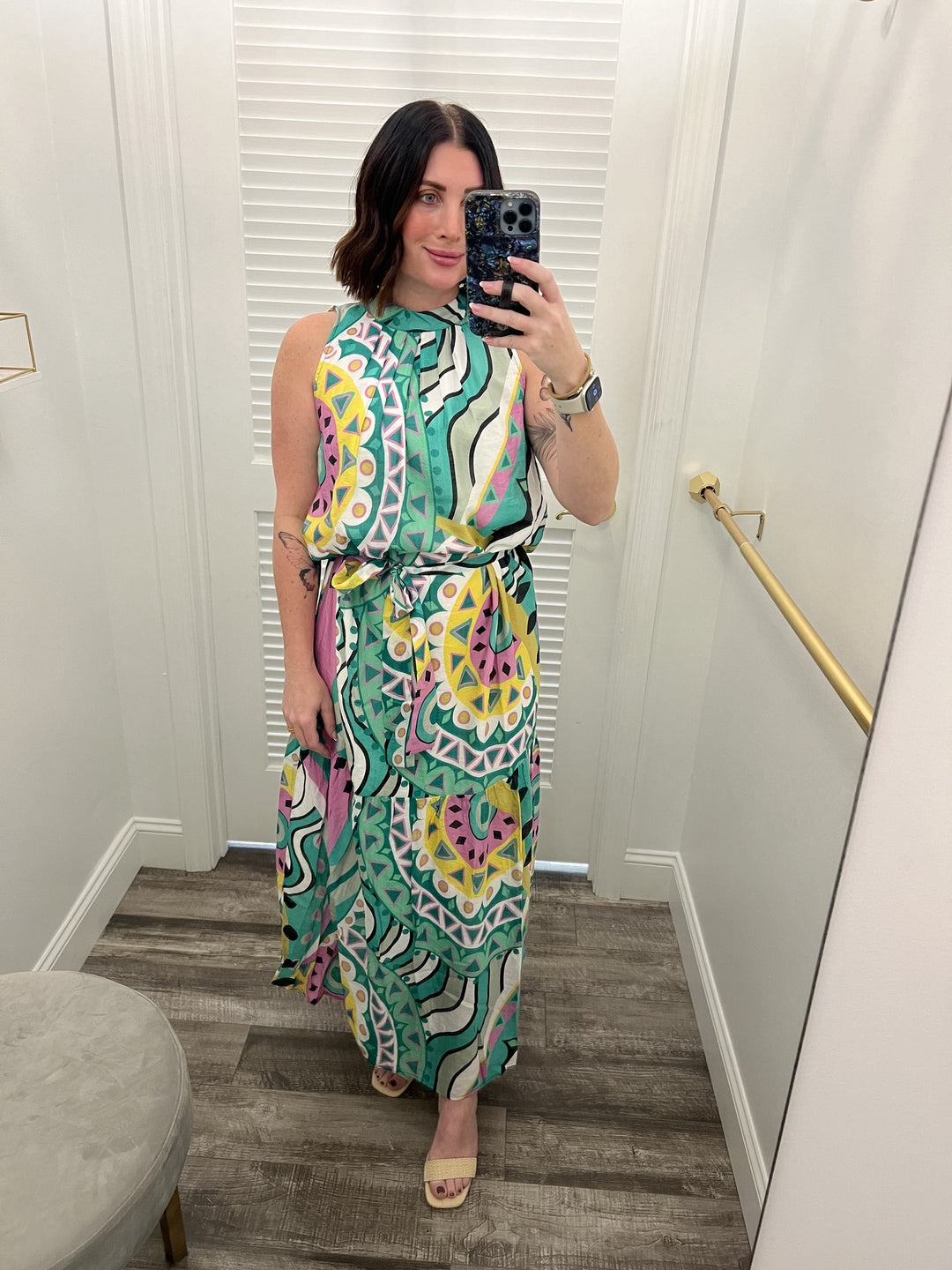 Umgee Toile Print Dress with Puff Sleeves Sage
